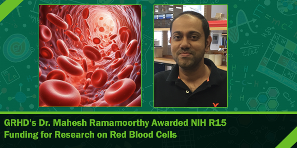 Dr. Mahesh Ramamoorthy, an assistant research professor in the Center for Gene Regulation in Health and Disease (GRHD), has received $552,736 in new funding from the NIH for his research studying the function of red blood cells. This three-year R15 award from the National Institute of Diabetes and Digestive and Kidney Diseases (NIDDK) will support Dr. Ramamoorthy's scientific research as well as the training of undergraduate researchers in his lab. Human red blood cells are flexible, doughnut-shaped discs that carry oxygen throughout the body. These cells do not have a nucleus and instead use that space for extra oxygen-carrying proteins (hemoglobin). Terminal erythropoiesis is the final stage of red blood cell development in bone marrow - when the cell sheds its nucleus and fills with hemoglobin for oxygen binding and then migrates into the bloodstream. If erythropoiesis does not occur correctly, it can lead to conditions like anemia and thalassemia. There is evidence that mutations in the Stag1 protein are tied to abnormal blood cell growth, and Dr. Ramamoorthy will study the role that the Stag1 plays during terminal erythropoiesis. |